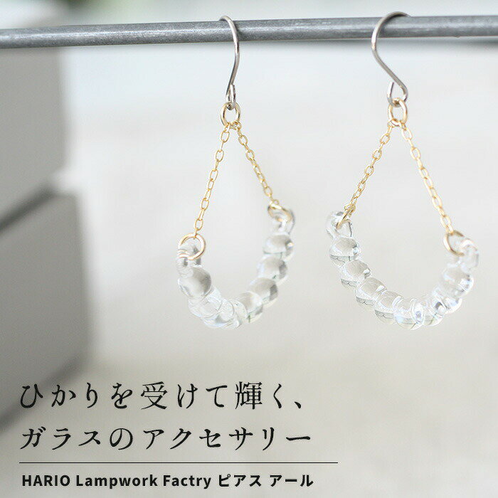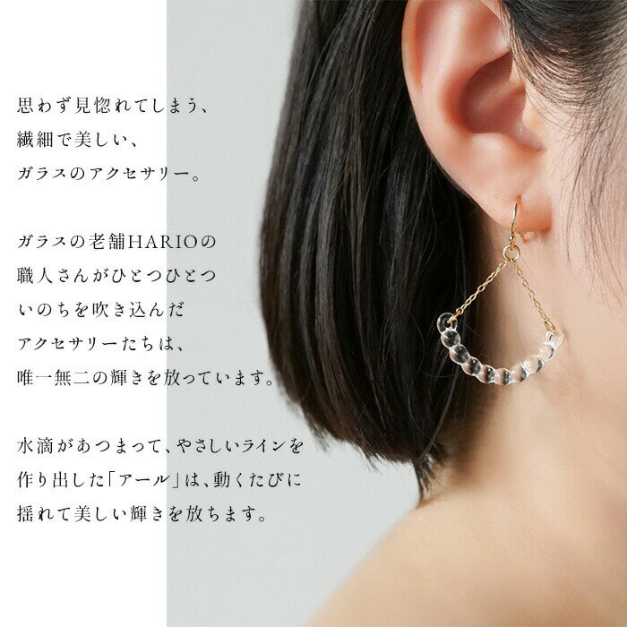 ピアス ガラス HARIO 透明 金属アレルギー チタンポスト ハリオ 日本製 40代 50代 60代 強化ガラス 揺れる アクセサリー フォーマル 卒業式 入学式 結婚式 ギフトHARIO Lampwork Factry ガラス HARIO Lampwork Factry ピアス アール サイズ ガラス大きさ28×14mm、チェーン長さ18・18mm 原産国 日本製 素材 ガラス、真鍮ゴールドメッキ(チェーン部分)、チタンポスト(フック部分)、シリコーン(キャッチ) メール便 × 特徴 ひかりを受けて輝く、ガラスのアクセサリー。