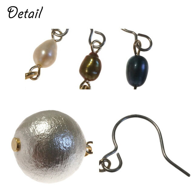 プレゼントしています! Item Spec 素材 コットンパール 淡水パール 合金(金メッキ) サジカルステンレスフック サイズ ◆コットンパールのサイズ:直径約12mm◆淡水パールのサイズ:約(タテ)5mmx(ヨコ)4mmx(アツミ)4mm※形・大きさは不揃いです。