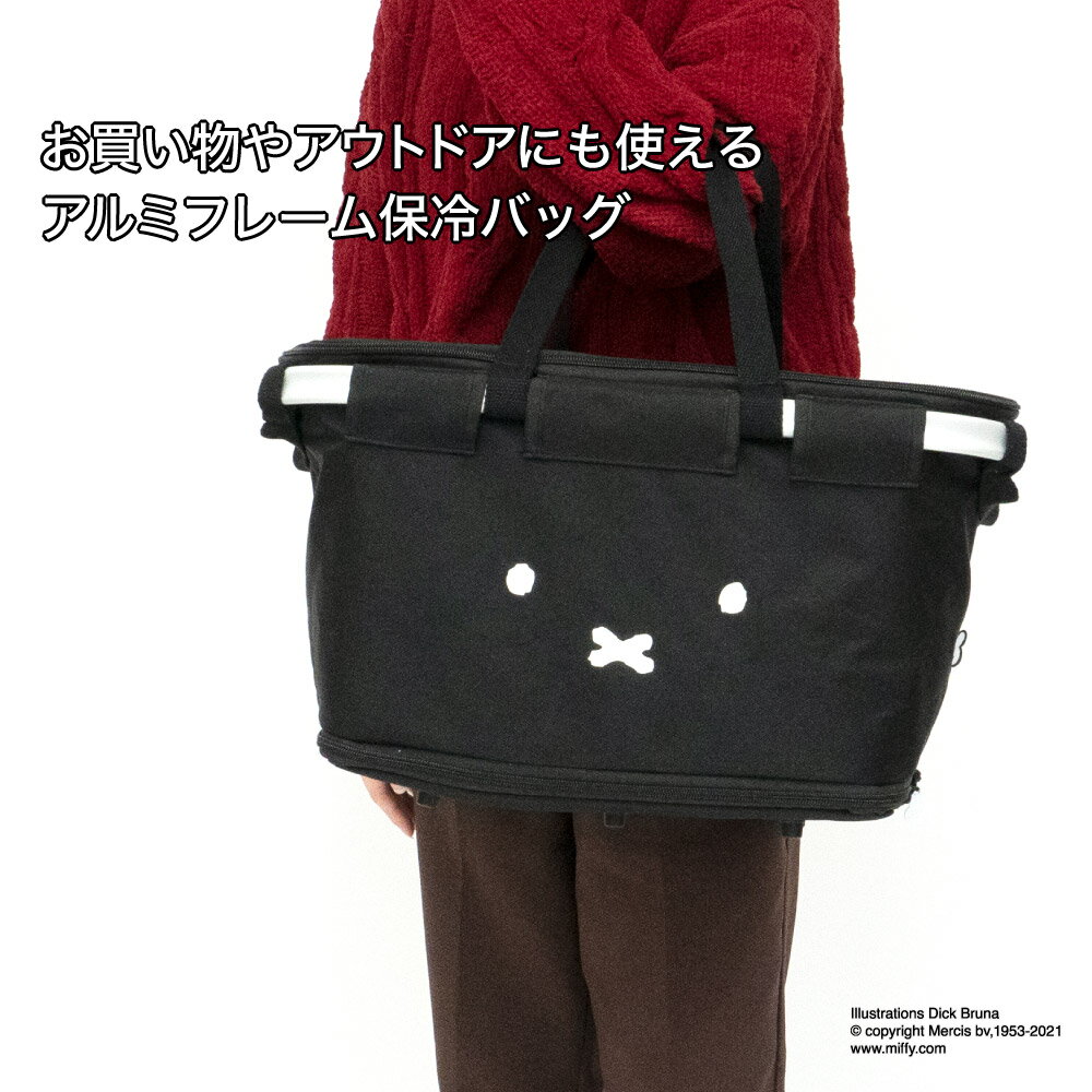 ミッフィー アルミフレーム 保温 保冷 バッグ かごバッグ miffy ブラック 黒 容量アップ 伸縮タイプ 26リットル 〜 34リットル 大容量