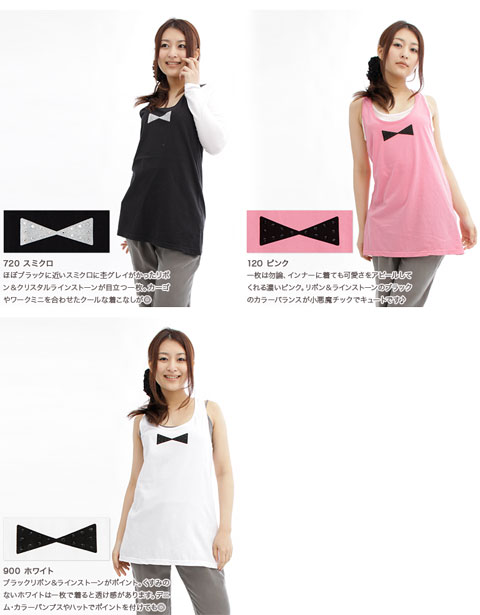 レーサーバック リボンロングタンクトップComment女の子が大好きなリボンにラインストーンを散りばめたプリントがキュート☆