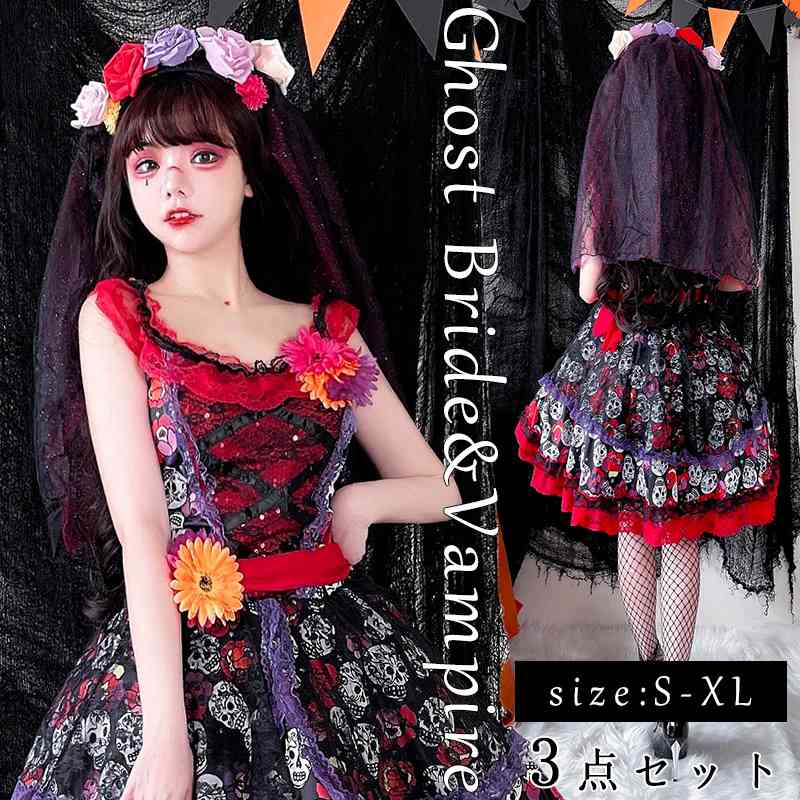 コスプレ ゾンビ 花嫁 おばけ ゴースト ハロウィン ゾンビ コスプレ ホラー ゾンビ花嫁 コスチューム お化け 幽霊 ヴァンパイア 吸血鬼 ゴスロリ ロリィタ ミニワンピース 血 仮装 こすぷれ コス セクシー 3点セット ペア コスプレ衣装 ハロウィン仮装 ハロウィン衣装 2022