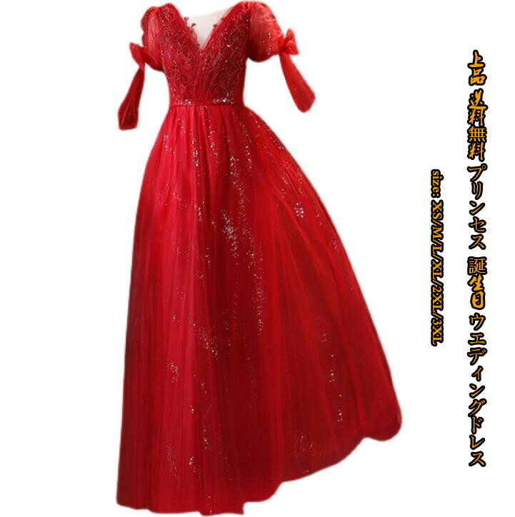 パーティードレス カラードレス 赤 演奏会用ドレス ロングドレス ステージ 衣装 ウエディングドレス 二次会 花嫁 結婚式 ピアノ発表会 プリンセスドレス フォーマルドレス 披露宴 カクテルドレス 半袖 大きいサイズ 大人 声楽 カラオケ ダンス衣装 舞台衣装