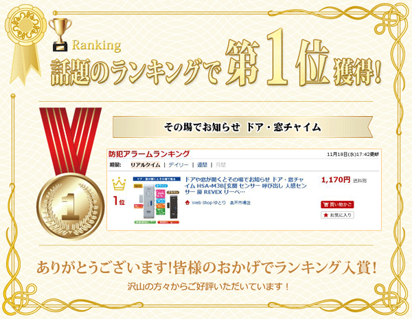 ●音圧レベル:55dB〜75dB/1m (チャイム・サイレンとも) ●使用電池:単4アルカリ電池×2本(別売り) ●電池寿命:約六ヶ月(新品電池で1日10回動作し、曲を一動作一回鳴らしたとき) ●音量最大連続時の電池寿命:約8時間 ●外形寸法:本体:W30×H120×D14mm マグネット子機:W11×H24×D7mm ●質量:本体33g マグネット子機4.4g ●本体とマグネット子機の裏側に、取り付け用の両面テープが付いてあります。